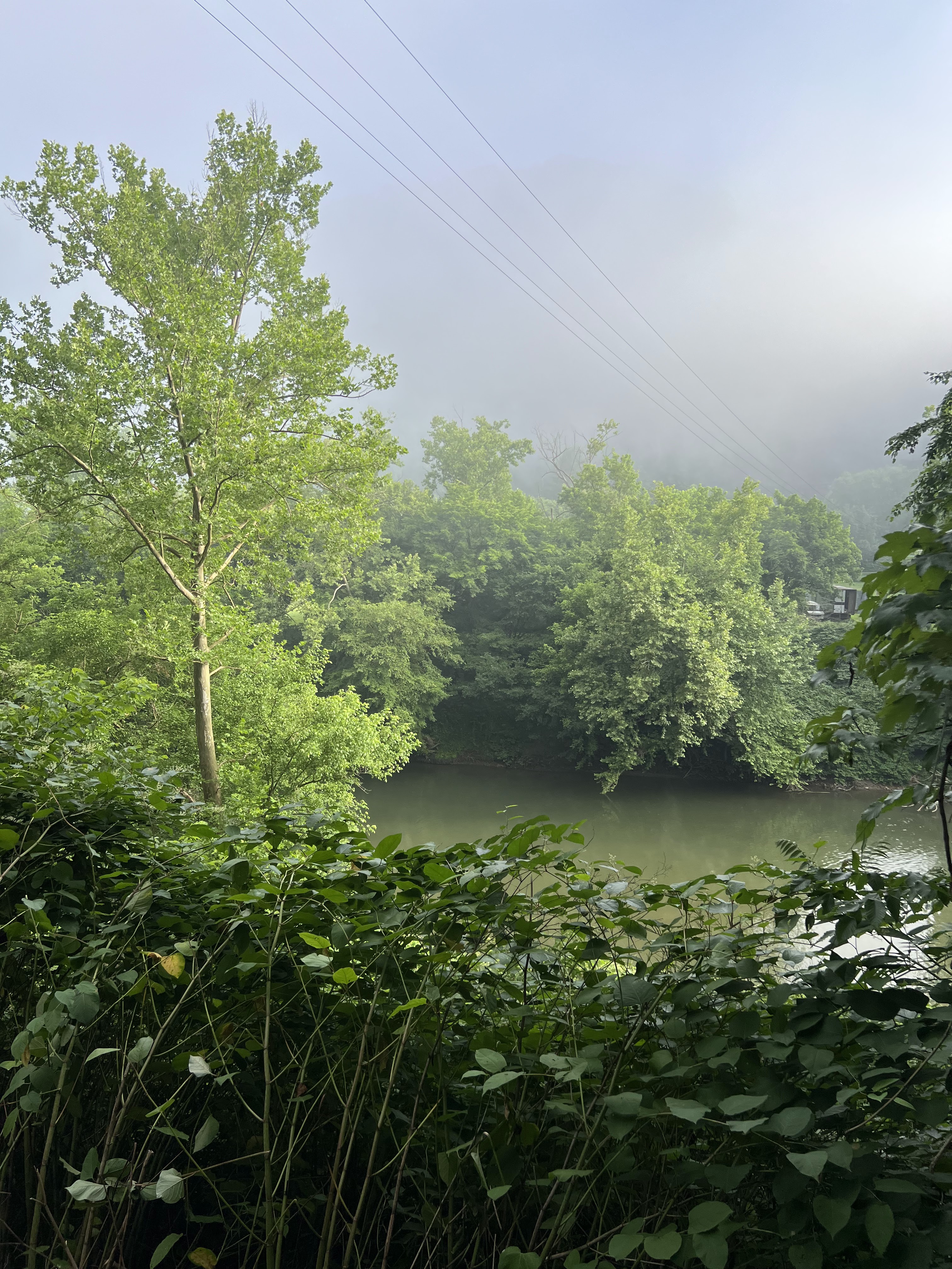 The weather was close to perfect for racing, which is more than I can say for our last few races. It was in the mid-50s and not humid. I imagine this is part of the advantage of being in a mountainous area. Our run started with a quick spin through downtown Matewan and then took us quickly to KY state line and the river mentioned in the race name. There was mist in the air that I thought made the scenery lovely.